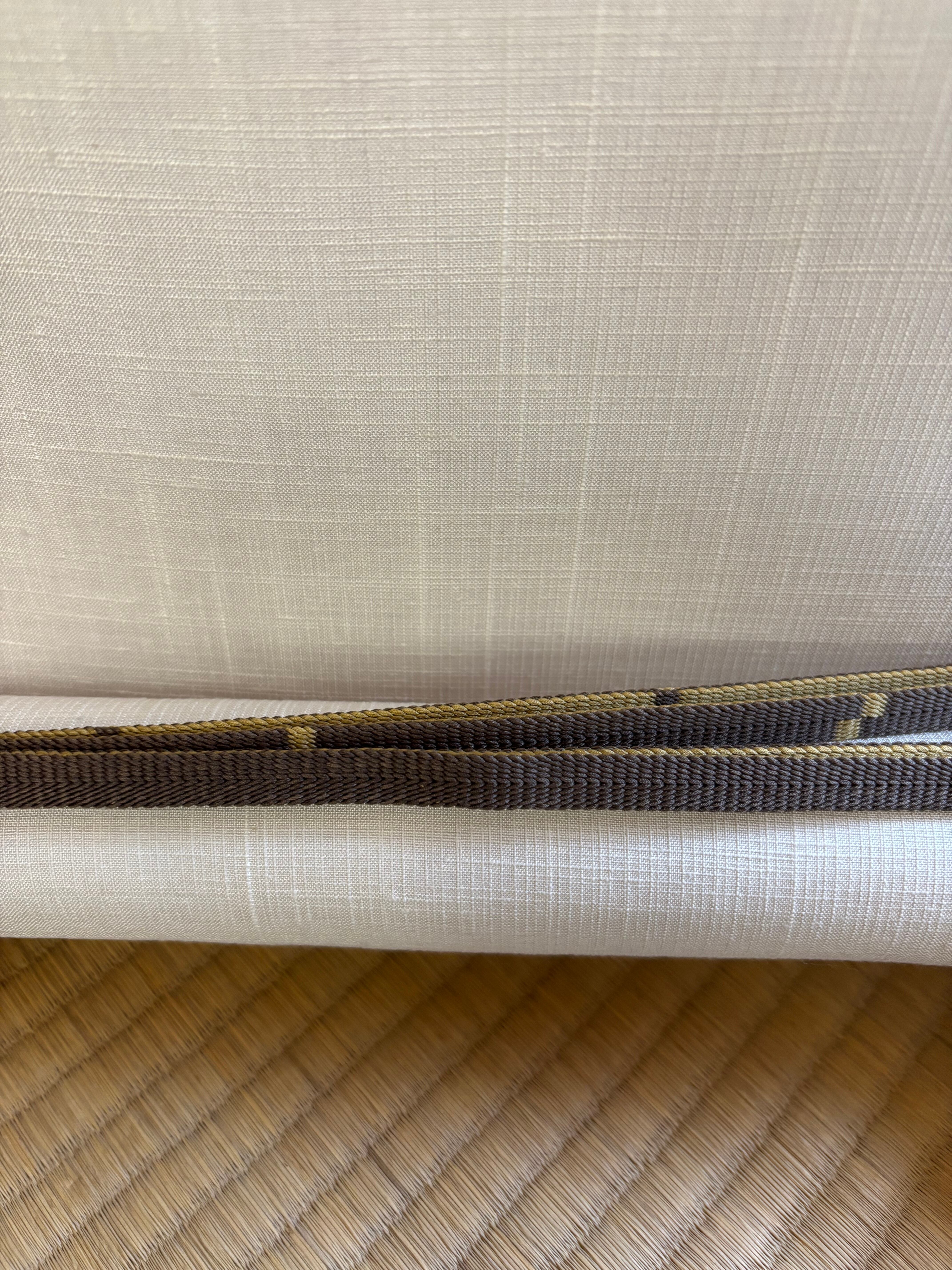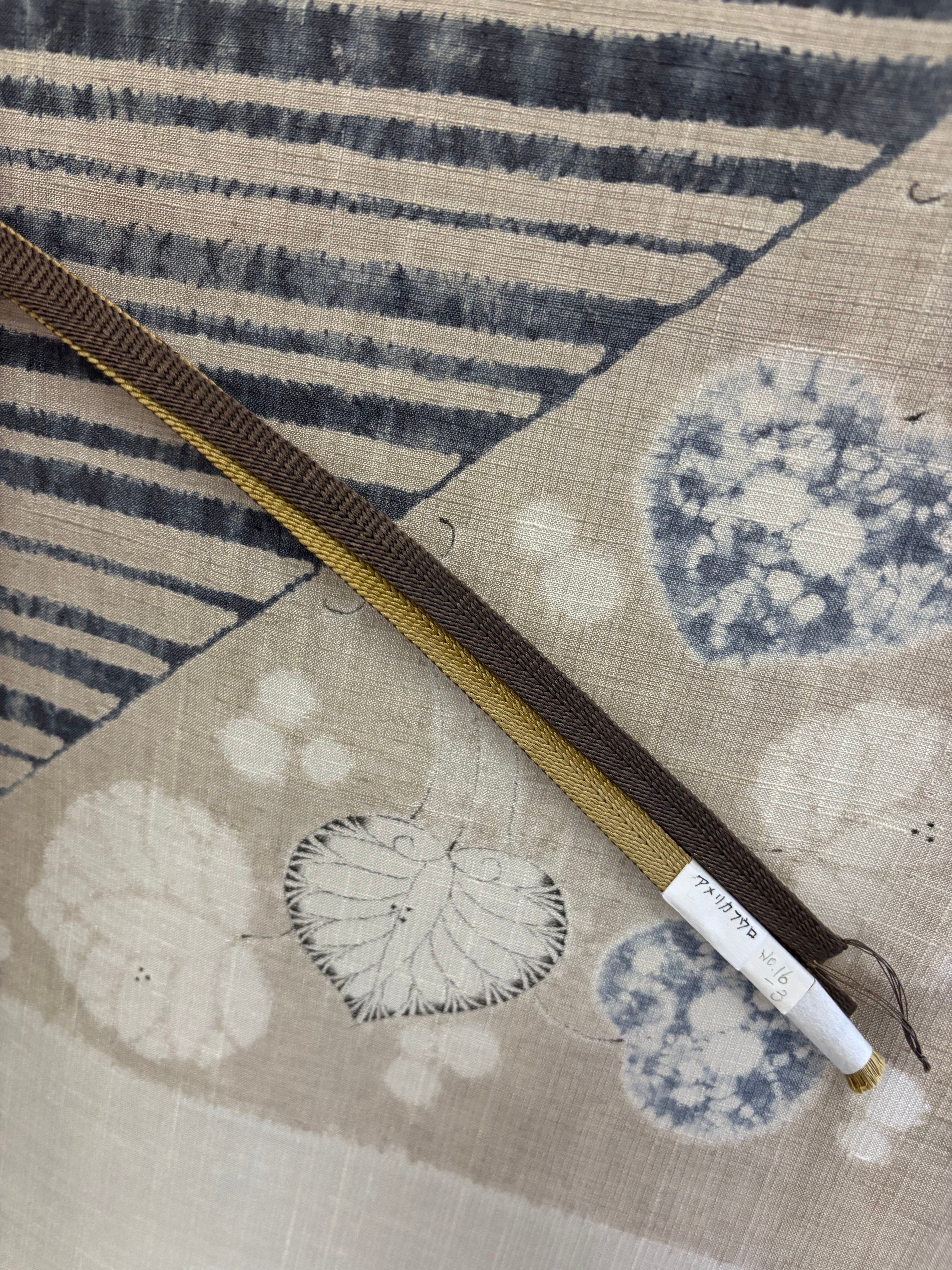 高尾山周辺で採取する植物を用いて絹糸を染め、綾竹組を主とした手組みで制作される三分紐は、帯留め合わせの幅を広げてくれます。